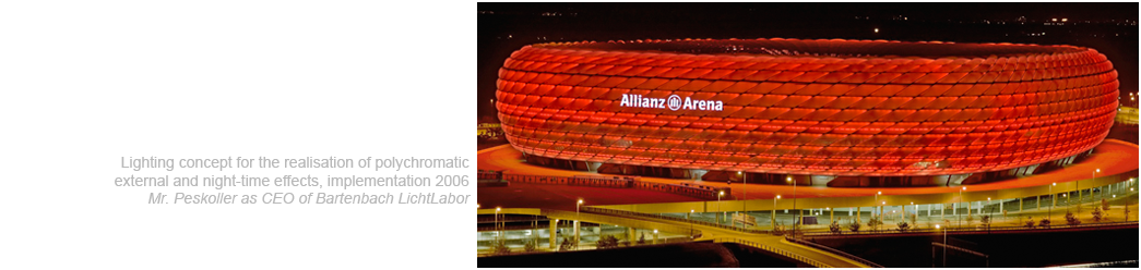 | Allianz Arena München Lighting concept for the realisation of multichromatic external and night-time effects, implementation 2006 Mr. Peskoller as CEO of Bartenbach LichtLabor | ![]() |